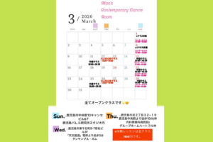 Mao’s Contemporary Dance Room 2025年3月のレッスンスケジュール ✩.·。*.·゚✧.·。*.·゚✩ .·。*.·゚✧.·。*.·゚ ※全てオープンクラスです! 【月謝…中央駅…